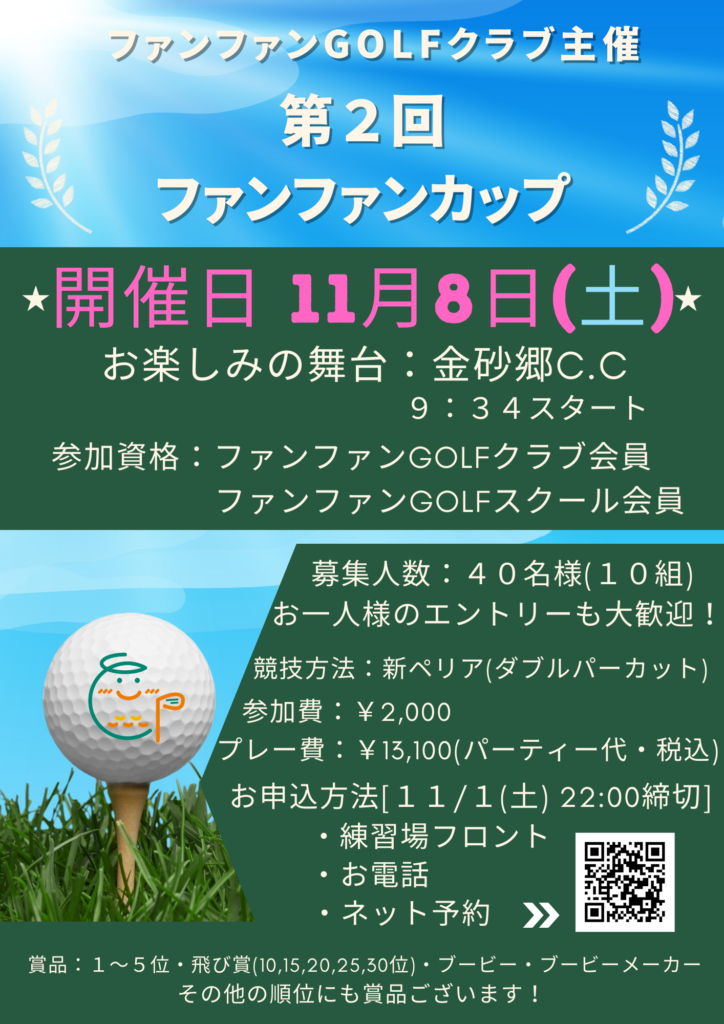 ファンファンGOLFスクール会員様とファンファンGOLFクラブ会員様限定のゴルフコンペを開催いたします。