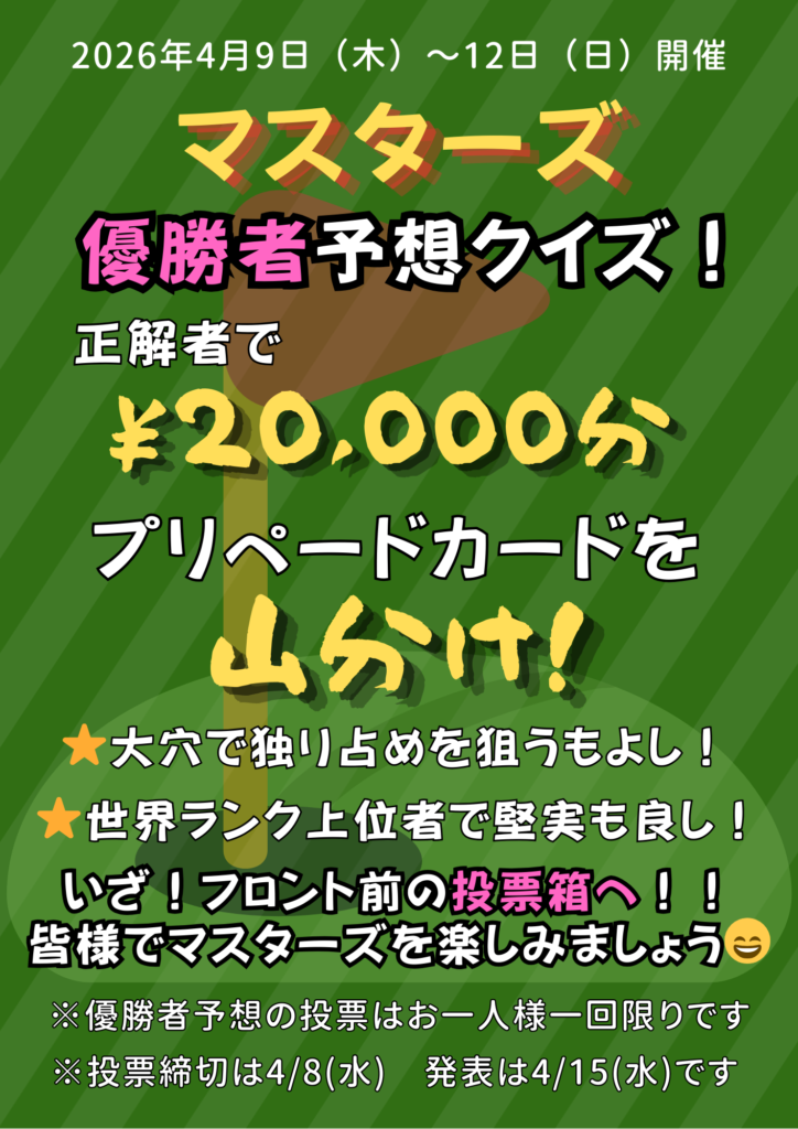 フロント前に設置してある 投票用紙に優勝予想選手を書いて投票箱へ入れるだけ!